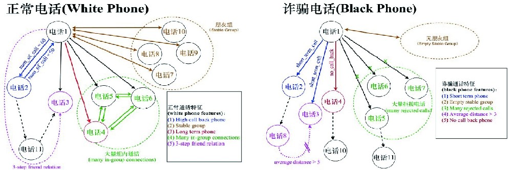 不同于传统的基于个人号码的相关信息进行判断,通过将通话关系整理成图(网),基于个人号码的拓扑关系,收集通话网络中的信息来辅助判断,减少了个人号码信息伪造对判断的影响,本模型中用到的数据特征涉及到多层数据关联。